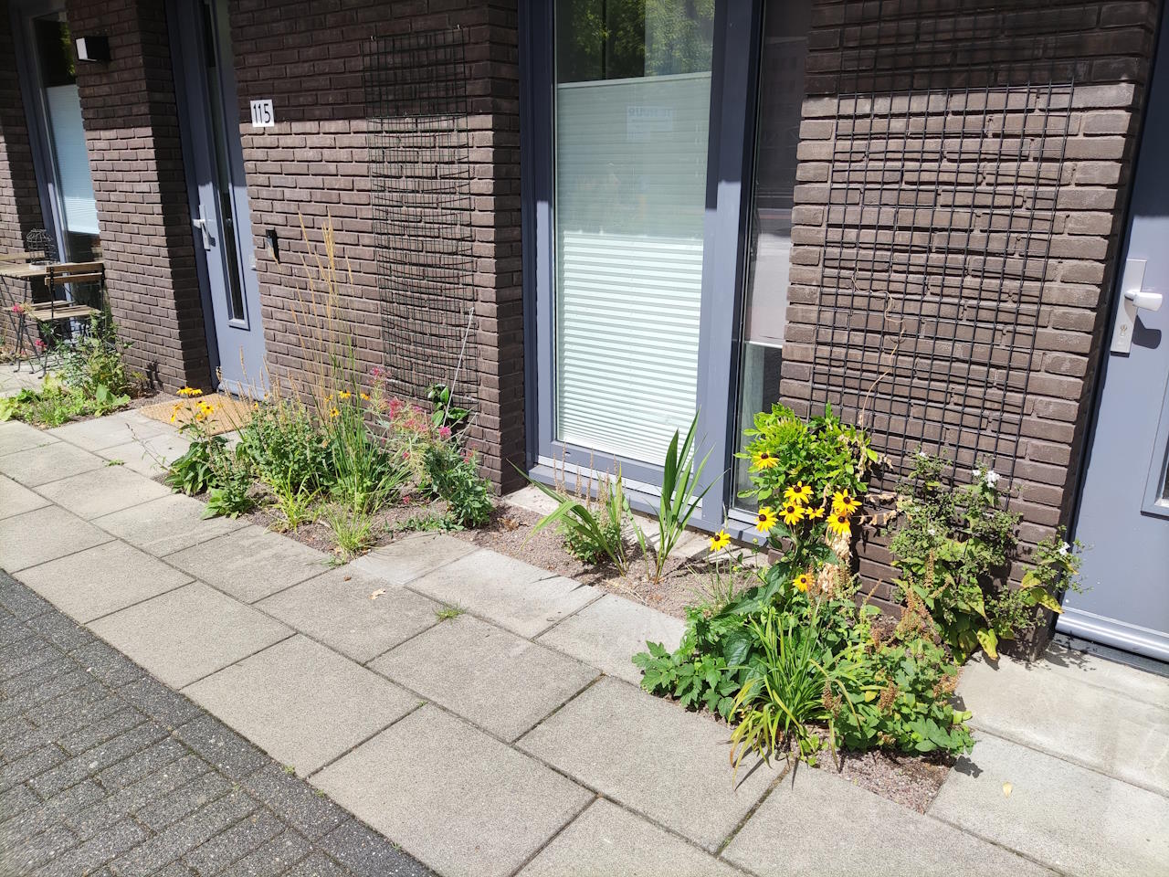 Op NL-doet 2023 is het derde blok met eengezinswoningen langs de Piet Mondriaanlaan aangepakt: verharding werd verwijderd en teelaarde en lavameel aangebracht. Samen met de bewoners was een plan opgesteld voor het verwijderen van een of meerdere tegels voor de woningen om daar geveltuintjes aan te leggen met vaste planten en klimplanten tegen de gevels. Op zaterdag 15 april werden de planten verdeeld. Na uitleg over de wijze van poten gingen de bewoners zelf aan de slag om de geveltuintjes te beplanten.