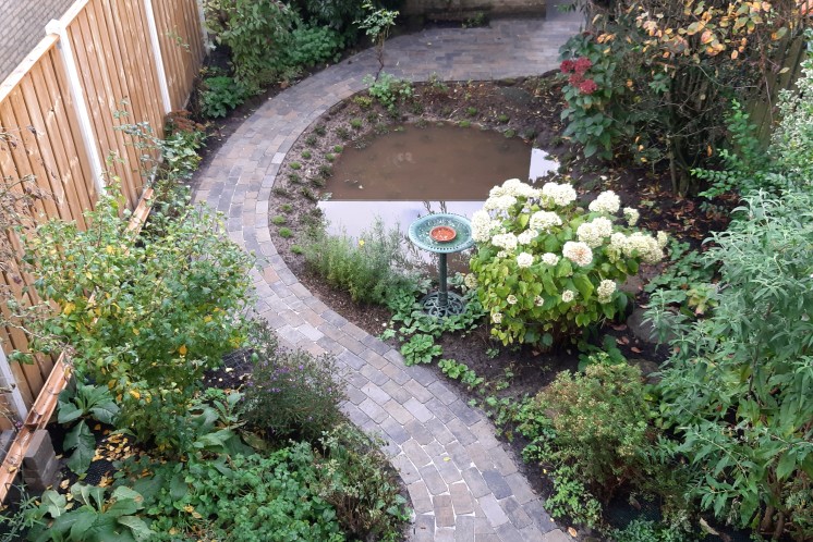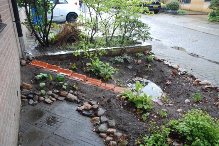 Bewoners van de Van Marnixlaan in Amersfoort schakelden de hulp van de regenwatercoach in om hun tuin rainproof te maken. Ze legden een wadi aan als waterdoorlatende opvangplek voor regenwater. Ook kwamen er drie drains in het hellende pad om overtollig water effectief op te vangen. Deze aanpassingen helpen bij het beheersen van wateroverlast en bevorderen de biodiversiteit.