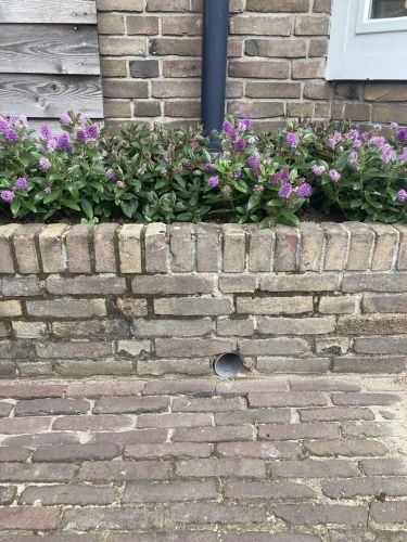 Sanne uit het Vermeerkwartier is hiermee aan de slag gegaan. De trampoline stond al in de voortuin. Om het water van de regenpijp aan de voorgevel naar het gat onder de trampoline te leiden was een kleine ingreep nodig: voor het afkoppelen van de regenpijp is een gat geboord in het muurtje van de verhoogde bloembak. De regenpijp komt daardoor uit op straatniveau. In de bestrating zijn drie rijen klinkers lager gelegd, waardoor ze een goot vormen. Het regenwater stroomt door deze goot richting het gat onder de trampoline.
