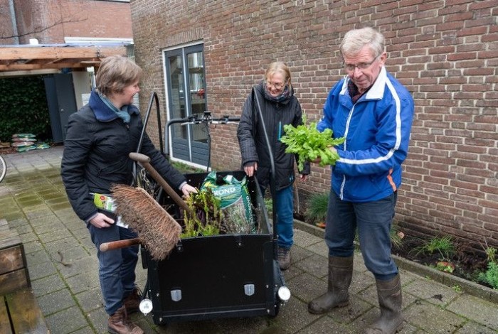 Met de handen in de aarde wroeten in de tuin van een ander. Vrijwilligers van het bakfietsproject Tuin en de logeertuin van wijkhuis de Driehoek in het Leusderkwartier doen het maar wat graag.